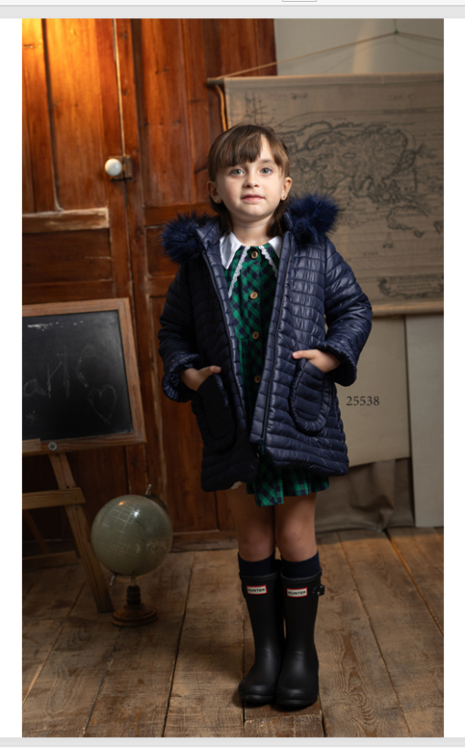 Abrigo guateado en marino con detalles en puños y bolsos y pelo en la capucha