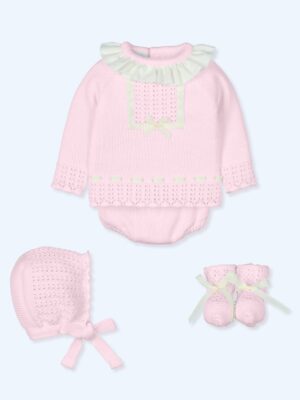 Conjunto manga larga con capota canesú en rosita