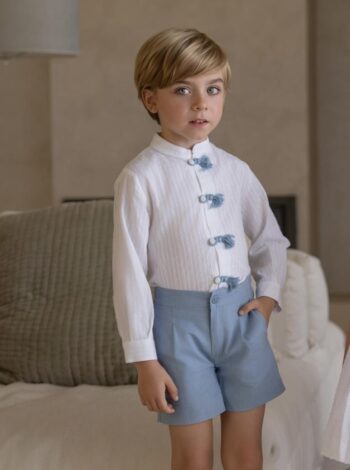 Conjunto de camisa manga larga con detalles en los botones azules