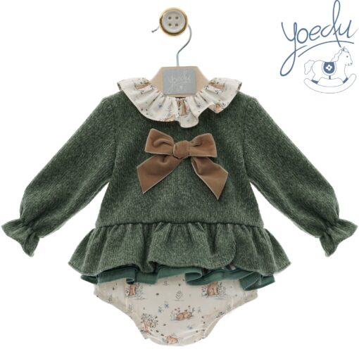 Jesusito en color verde musgo con ranita y cuellos al tono