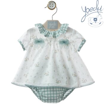 Jesusito con detalles vichy verde empolvado a juego de la ranita