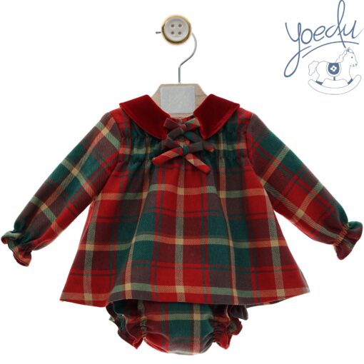 Jesusito de cuadros en tonos rojos con cuello redondo blanco